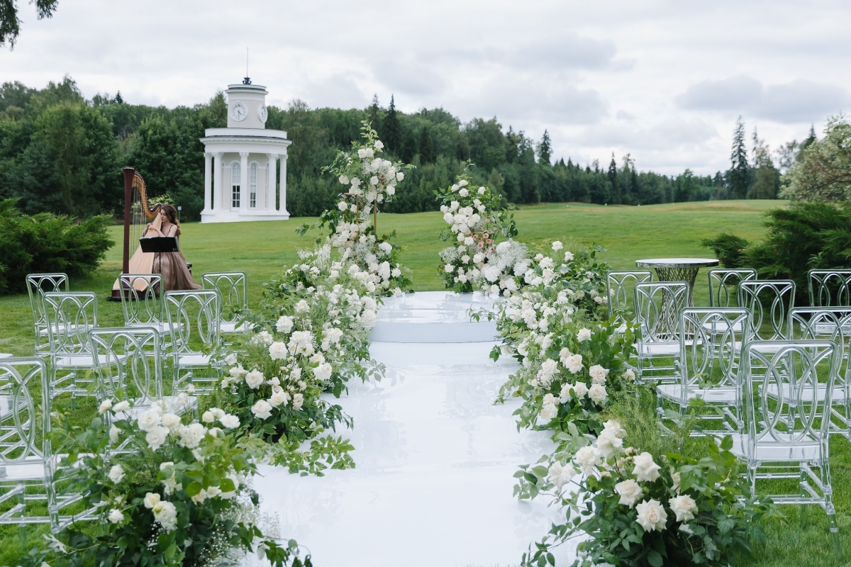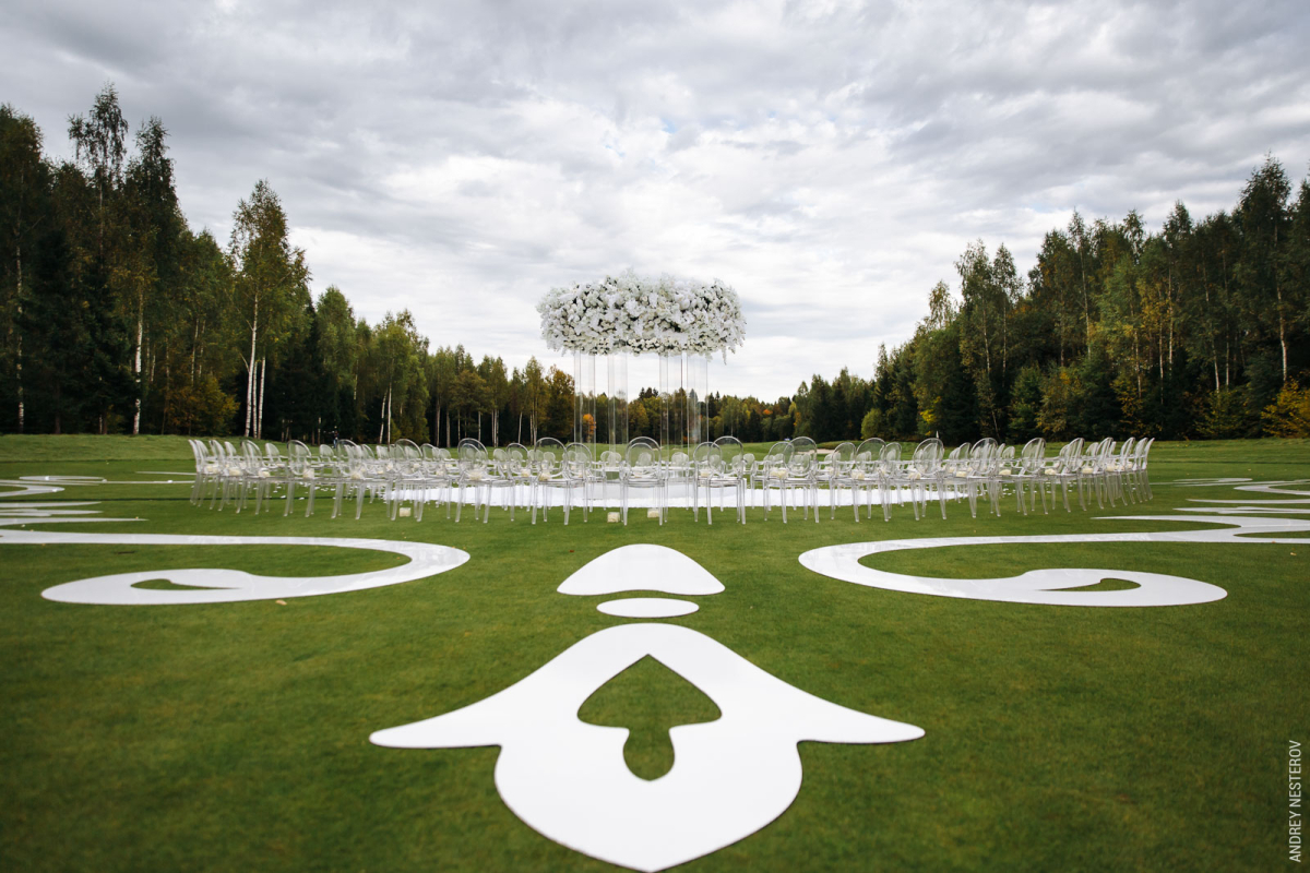 Академическое гольф-поле – одно из самых необычных и потрясающих мест для выездной регистрации. Свадебная церемония на зеленых просторах – шикарная, оригинальная и модная тенденция, соединяющая классику и современность
