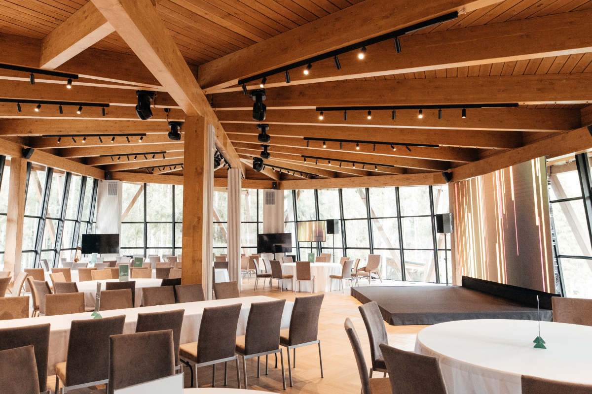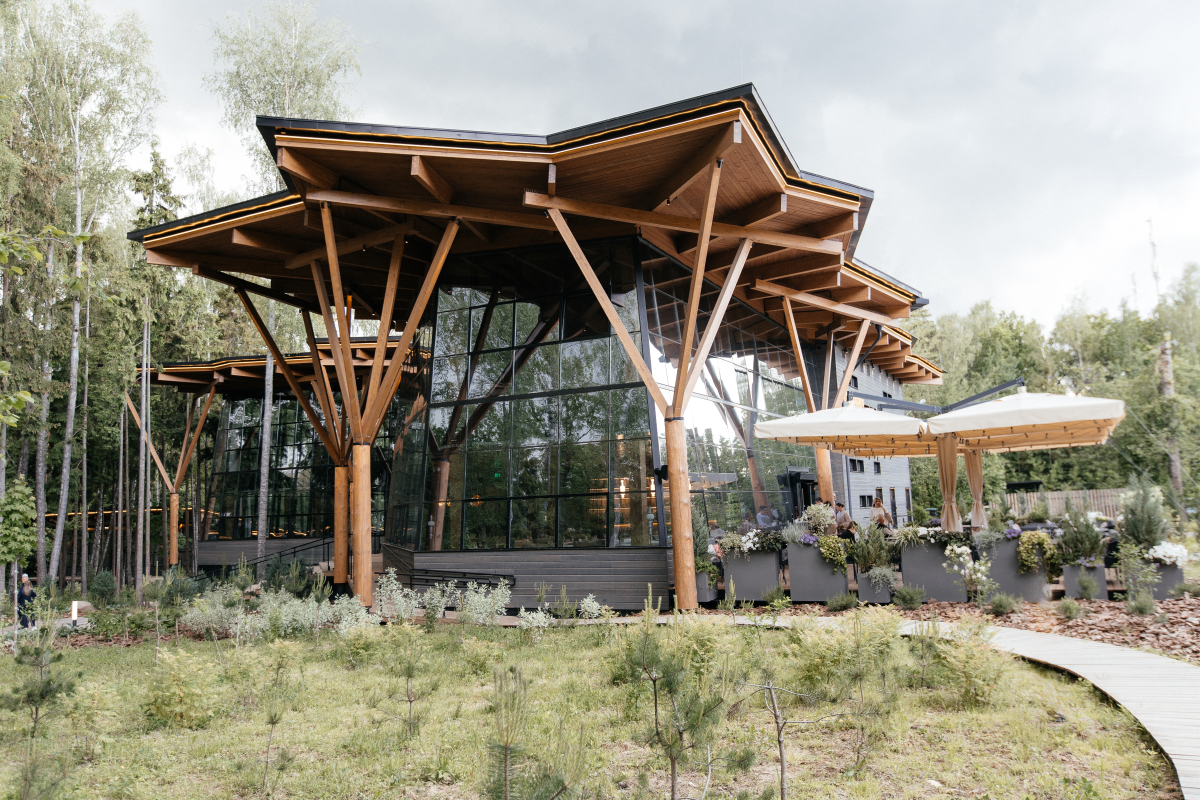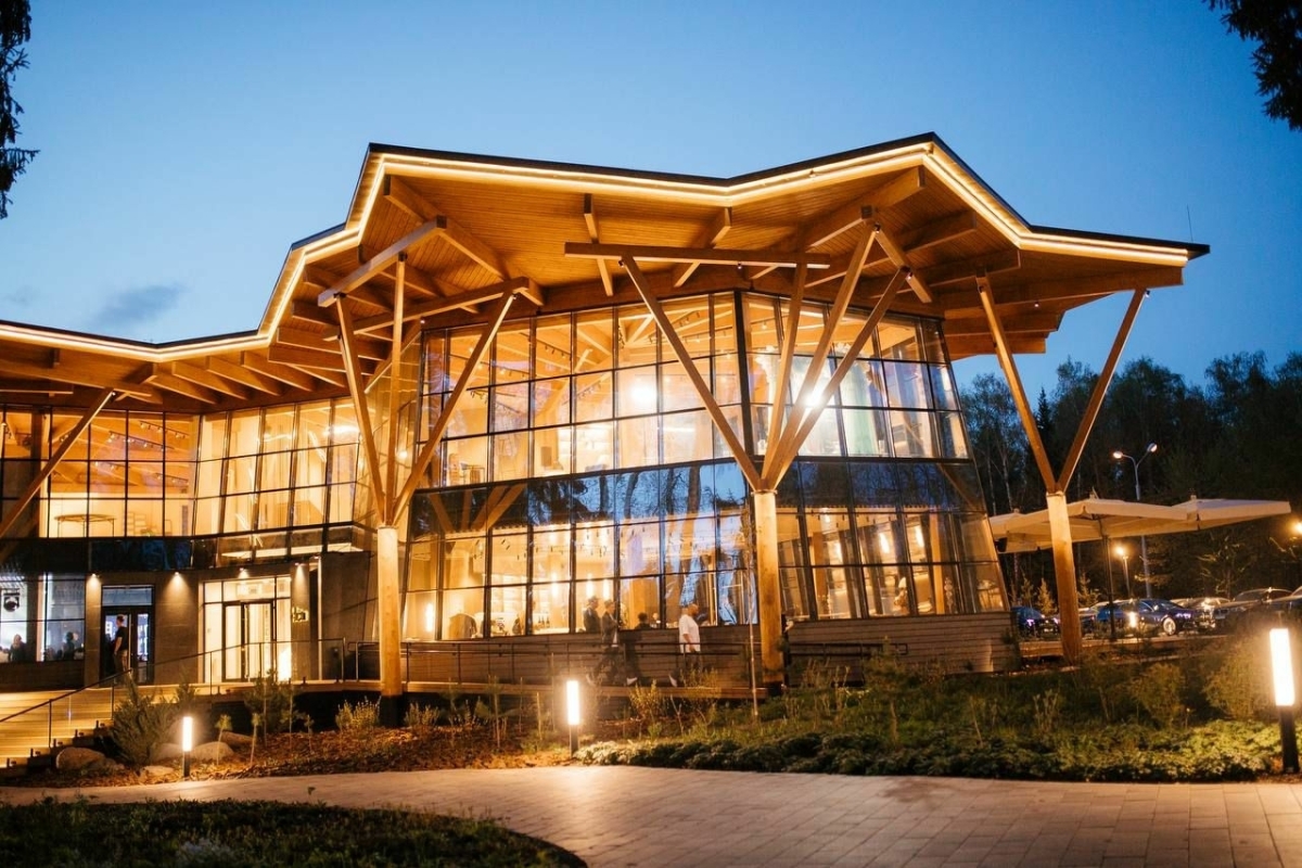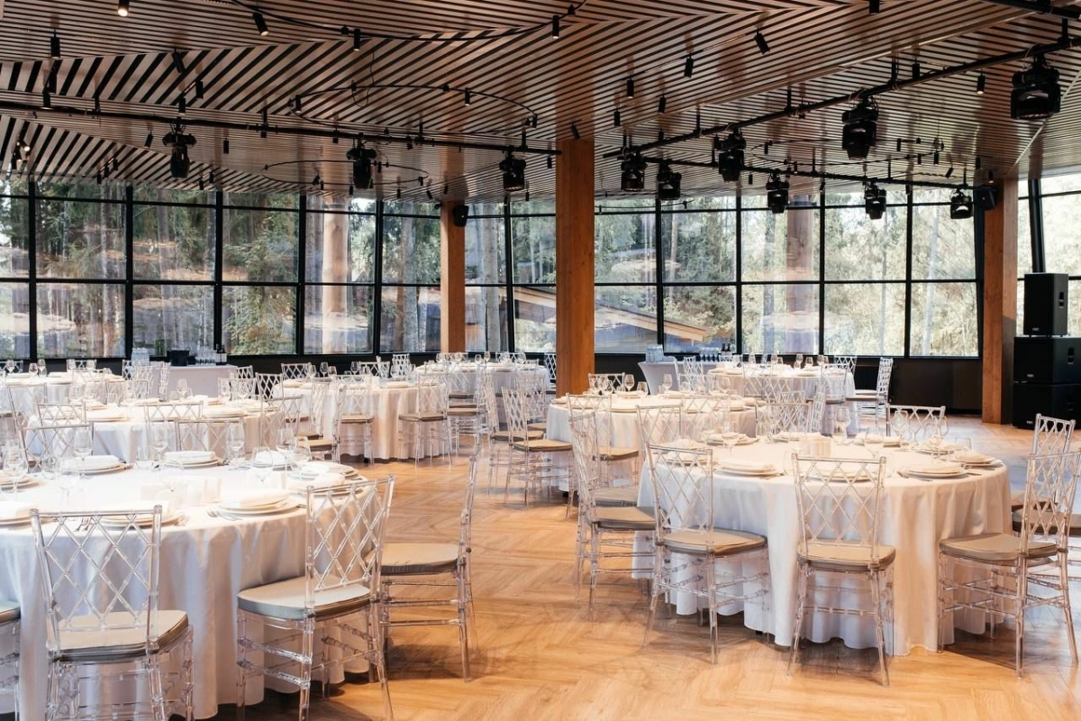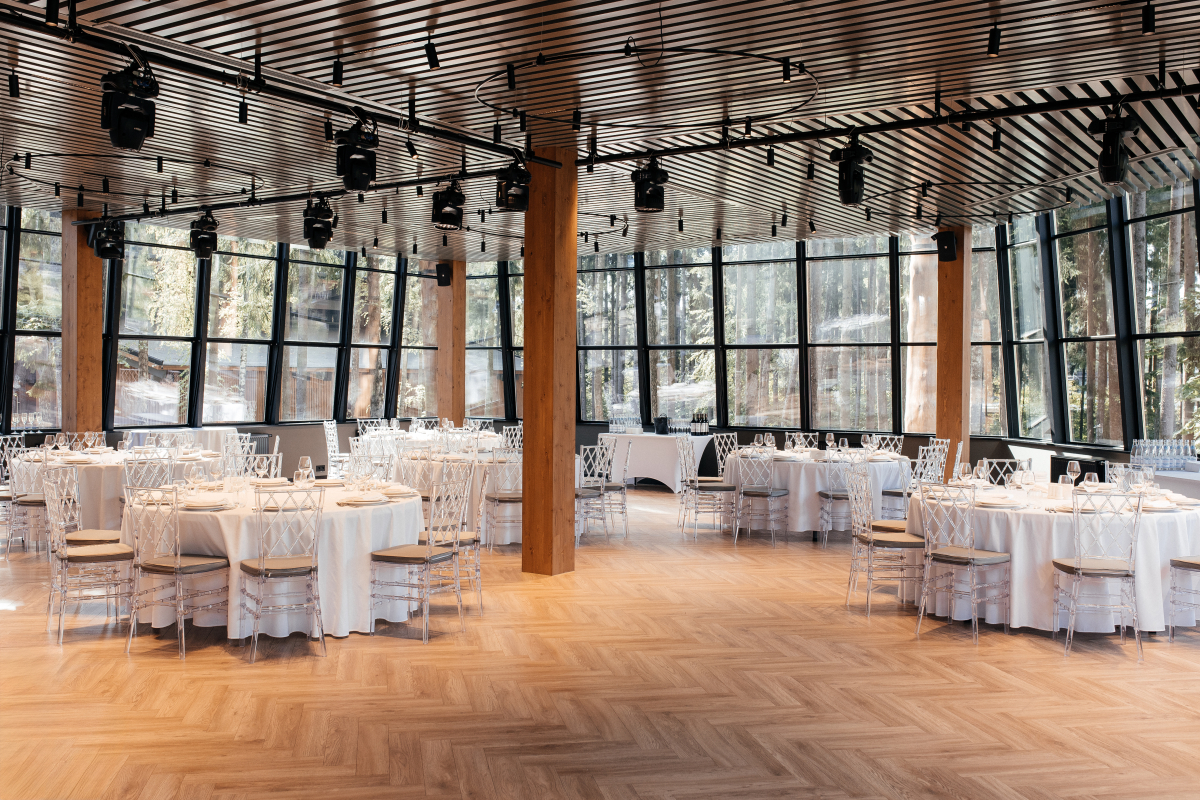 Отдельно стоящее здание с собственной атмосферой и видом на сосновый лес. Просторный зал со сценой, идеальной акустикой и выходом на открытую веранду создает ощущение праздника уже с первых минут. В нем вы сможете провести банкеты до 130 гостей, конференцию до 150 участников, фуршет до 150 гостей. Кухня полного цикла позволяет проводить мероприятия любого формата - от камерного ужина до масштабного банкета. Каждая деталь здесь создана, чтобы вы наслаждались моментом, а организацию мы возьмем на себя.