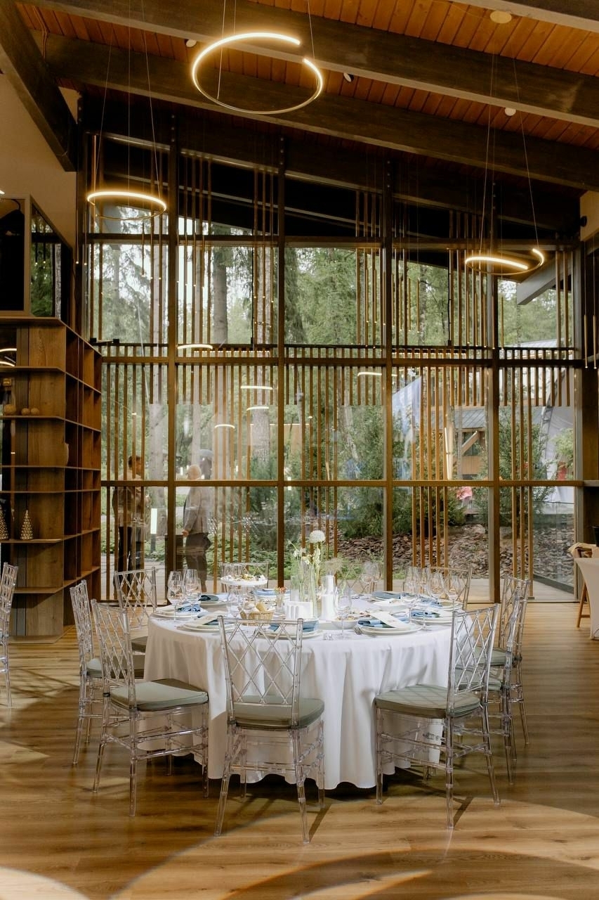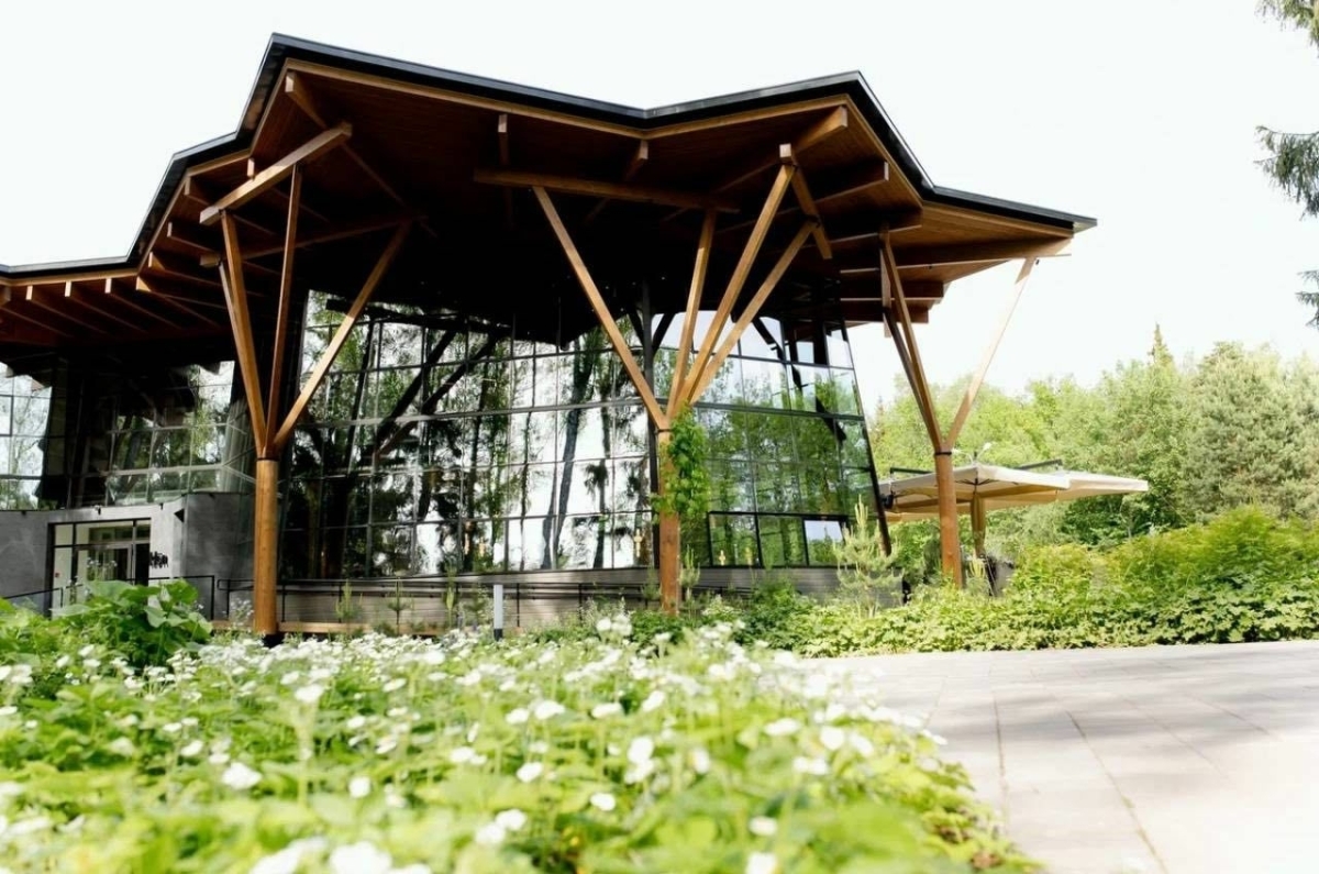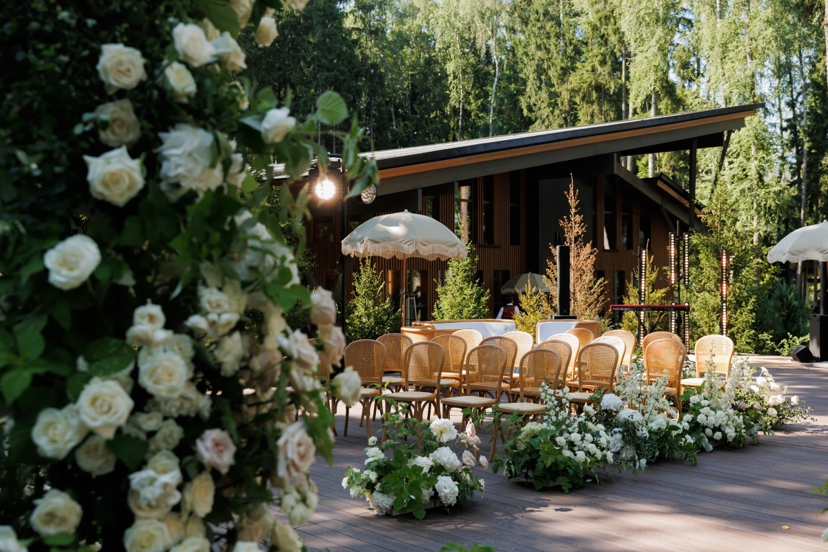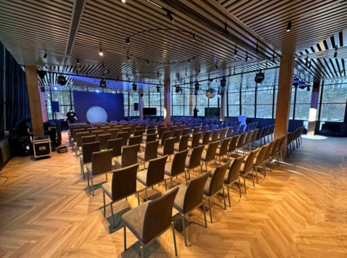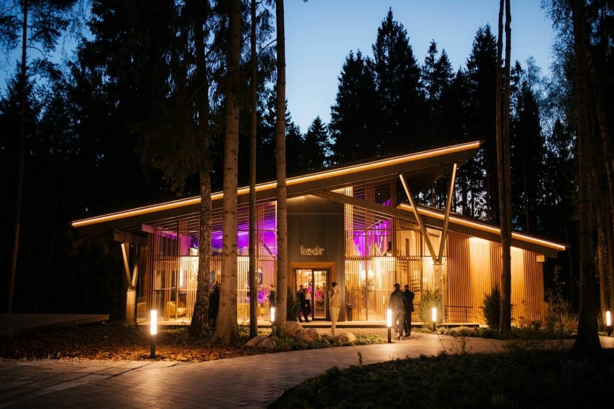 Отдельно стоящее здание с собственной атмосферой и видом на сосновый лес. Просторный зал со сценой, идеальной акустикой и выходом на открытую веранду создает ощущение праздника уже с первых минут. В нем вы сможете провести банкеты до 130 гостей, конференцию до 150 участников, фуршет до 150 гостей. Кухня полного цикла позволяет проводить мероприятия любого формата - от камерного ужина до масштабного банкета. Каждая деталь здесь создана, чтобы вы наслаждались моментом, а организацию мы возьмем на себя.