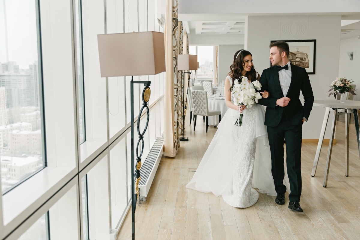 Залы на 10-40 персон подходят для проведения свадебного ужина для самых близких и дорогих гостей. Фантастический вид из этих премиум-залов на сердце столицы, набережную Москвы-реки, легендарные московские высотки и Арбат, открывающийся из панорамных окон, очарует даже самых взыскательных гостей.